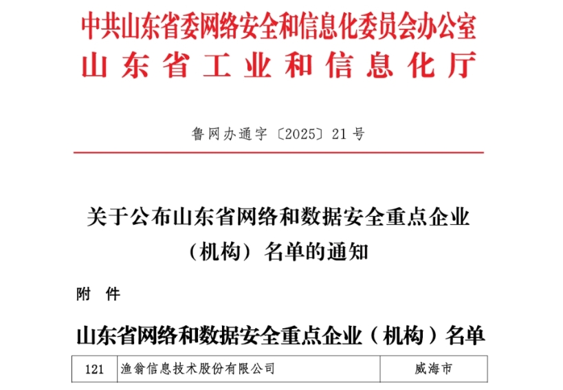 近期,山东省委网信办、山东省工信厅正式公布“山东省网络和数据安全重点企业(组织)名单”。本次评选共遴选出147家重点企业和33家重点组织,银河集团(中国)信息凭借在密码技术领域的自主创新实力、全栈式数据安全解决方案及突出的行业贡献成功入选。